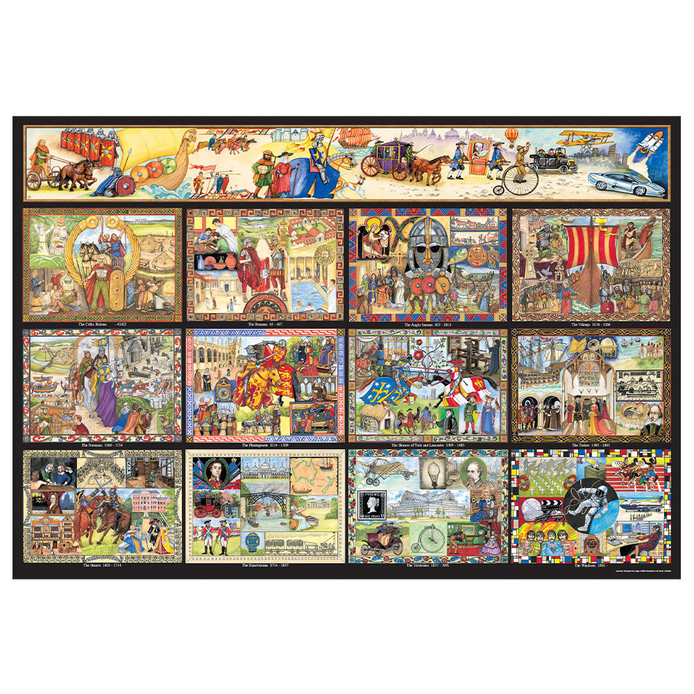 A double sided laminated wallchart depicting periods of reign, from the Celts in 43AD to the modern day Windsors.