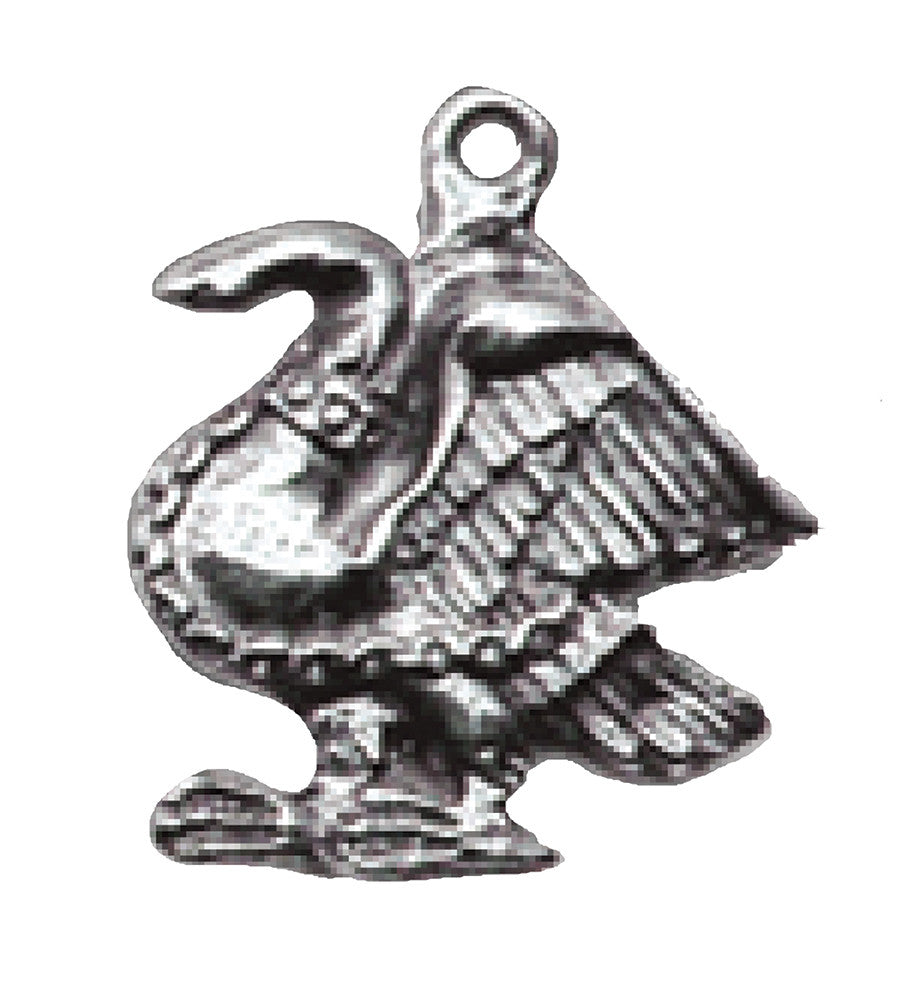A pewter pendant featuring a swan, an elegant piece that blends history with natural beauty.